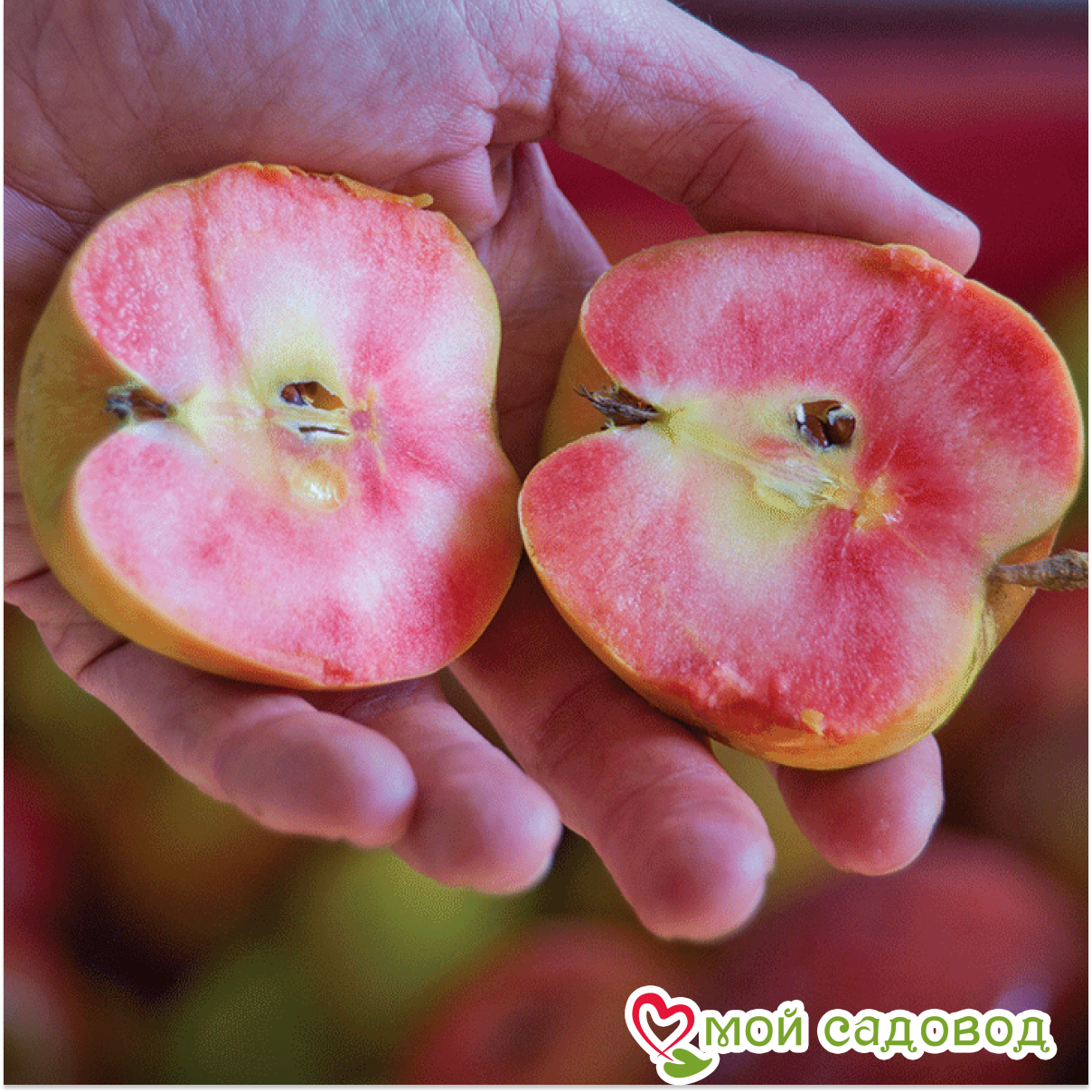 Яблоня Хидден Роуз (Hidden Rose) — поздне-осенний сорт яблони с розово-красной мякотью селекции США. Выведен в штате Орегон. Название сорта переводится как «Скрытая роза». Урожай созревает во второй половине сентября. Урожай отлично хранится до Нового Года. Плоды средних и крупных размеров, массой 120-150 г, отдельные до 200 г, что является хорошим стандартным результатом по крупности яблок, конической формы, желто-зеленые, с размытым оранжевым румянцем на половине плода. Кожица покрыта белыми точками, с небольшими розовыми пятнышками. Раскраска очень неординарная, броская, плоды внешне очень привлекательные. Мякоть насыщенно-розового цвета, очень сочная, хрустящая, очень ароматная, отличного сбалансированного кисло-сладкого вкуса, с небольшой изысканной терпкостью в первое время после сбора урожая, которая потом пропадает. Вкусовые качества отличные, становятся более высокими после некоторого периода улеживания и набирают большую сладость и аромат. Место посадки Главное условие при выборе места для посадки яблони — уровень залегания грунтовых вод. Высокое их стояние приводит к отмиранию корневой системы. В результате наблюдается явление суховершинности кроны, растение слабеет и погибает. Не подходят для яблонь и заболоченные участки, а также сухие песчаные почвы при близком залегании извести, щебня, плотных горизонтов глин. Место для посадки должно быть защищено от холодных северных ветров. В нашем интернет-магазине вы сможете купить Саженцы яблони Так же возможно вас заинтересуют Яблоня Джонатан и Яблоня Старк эрлиест